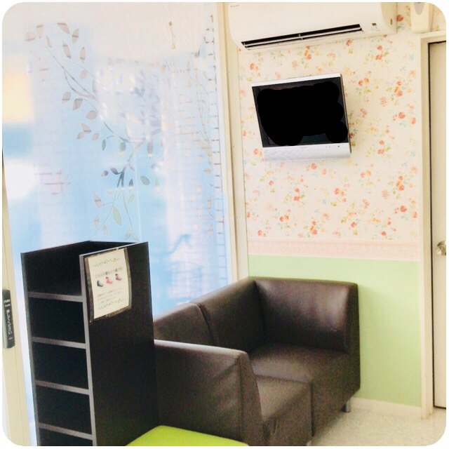 - 花の壁紙で明るく、清潔な待合室です*